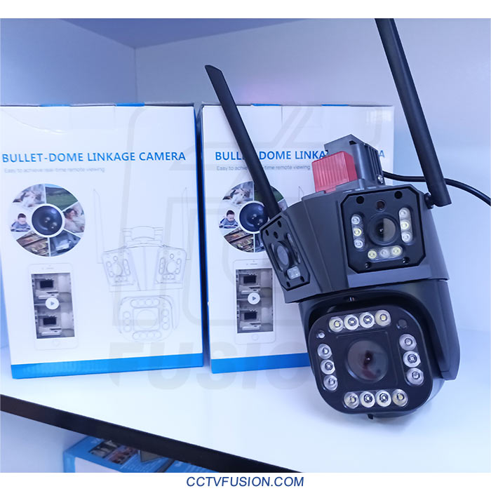 دوربین مداربسته سه لنز سیمکارتی O-Kam QQ839-WP-4-4G با ترکیب سه لنز ۵ مگاپیکسلی، دید در شب رنگی، مکالمه دوطرفه و اتصال مستقیم 4G، نظارتی کامل و بدون نقطه کور ارائه میدهد.