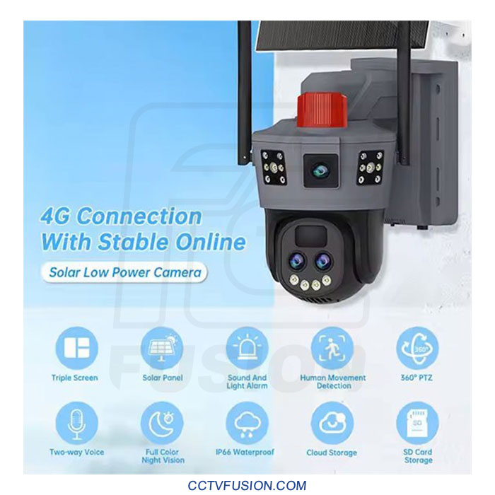 دوربین مداربسته سولار سیم کارتی TS30 یک دوربین امنیتی خورشیدی سه لنز با زوم اپتیکال 10X است که مخصوص محیطهای باز طراحی شده است. این دوربین با بهرهگیری از پنل خورشیدی ۱۰ وات و باتری داخلی قدرتمند، امکان نظارت دائم بدون نیاز به برق شهری را فراهم میکند. TS30 با قابلیت چرخش 355 درجه افقی و 120 درجه عمودی، دید در شب رنگی و تعقیب سوژه، گزینهای ایدهآل برای باغها، حیاطها، زمینهای کشاورزی و محیطهای باز میباشد.