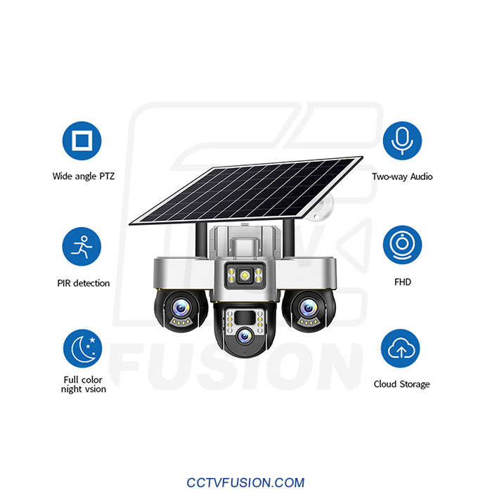 دوربین سه لنز خورشیدی سیمکارتی مدل VST30-5G-8MP یک سیستم نظارتی تمامعیار و مستقل از برق شهری است که با بهرهگیری از انرژی خورشیدی، اتصال 4G/5G و فناوری چرخش کامل PTZ، پوشش محیطی 360 درجه را بدون هیچ نقطه کوری ارائه میدهد.